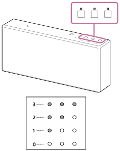 Højttalerens indikator viser signalstyrken (modtagefølsomhed) via sine blink, når højttaleren har oprettet forbindelse til et Wi-Fi-netværk.