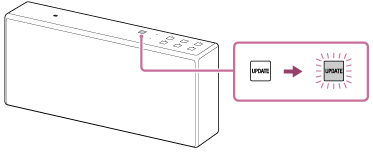 - Intervallet som UPDATE-knappen blinker etter reduseres midlertidig avhengig av programvareoppdateringens fremgang. Vær forsiktig så du ikke slår av høyttaleren. Hvis høyttaleren ikke kan oppdatere programvaren, vil UPDATE-knappen fortsette å blinke sakte inntil høyttaleren er slått av. Før du slår av høyttaleren, sørg for at UPDATE-knappen fortsetter å blinke sakte for å se om den viser et problem med programvareoppdateringen.