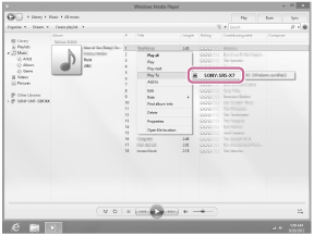 A coluna também pode ser mudada para o modo NETWORK automaticamente, em vez de tocar no botão NETWORK, reproduzindo a música através da função [Play To], após iniciar o Windows Media Player.