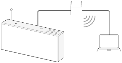 Esta secção descreve o modo de ligação da coluna a um router sem fios com um cabo LAN (não fornecido) e, em seguida, ligue o router ao computador.