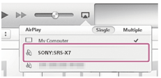 Selecione [SONY:SRS-X7] no menu AirPlay do iTunes.