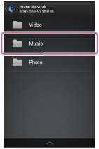 - Selecione [Music] e, em seguida, uma música na lista e comece a reprodução.