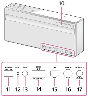 PAIRING-knapp/indikatorTryck för att växla till BLUETOOTH-läget eller ihopparningsläget för högtalaren.