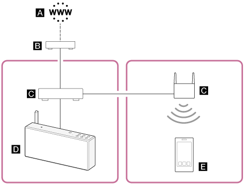 : สมาร์ทโฟน/iPhoneใช้ฮับเครือข่าย หรือจุดเชื่อมต่อ Wi-Fi ในการกระจายการเชื่อมต่อ โดยตั้งเป็นโหมดขยายการเชื่อมต่อ เมื่อพบว่าเชื่อมต่อลำโพงและสมาร์ทโฟน/iPhone กับเร้าท์เตอร์ตัวเดียวกันได้ยาก (ตัวอย่างเช่น เมื่อใช้งาน “SongPal” บนสมาร์ทโฟน/iPhone ที่วางไว้คนละห้องกับที่วางลำโพง)