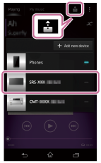 Det går också att automatiskt växla högtalaren till NETWORK-läget istället för att trycka på NETWORK-knappen, genom att välja högtalaren i menyn i Music-programmet för din Xperia och sedan spela upp musiken.