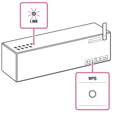 (tændt/standby) lyser grønt, og indikatoren LINK blinker. Gå til næste trin, når indikatoren LINK blinker langsomt (en gang pr. tre sekunder).Når du konfigurer indstillingerne for højttaleren første gang efter køb eller efter initialisering af højttaleren, kan denne langsomme blinken, i nogle tilfælde, være fire eller fem minutter om at begynde.