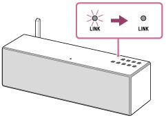 - Når du første gang slutter højttaleren til en computer, tager det omkring fire eller fem minutter, før indikatoren LINK stopper med at blinke og lyser pink.
