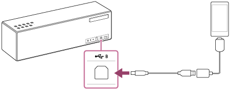 Du kan slutte en Walkman, der understøtter høj opløsning, til højttaleren med et valgfrit USB-til-WM-PORT-adapterkabel til lyd i høj opløsning* og et almindeligt tilgængeligt USB-kabel.