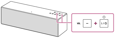 Tænd højttaleren, tryk på knappen VOL – (lydstyrke) og knappen
