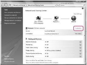 - Controleer of [(Private network)] weergegeven wordt op het scherm [Network and Sharing Center] en sluit het scherm.
