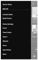 - 在“SongPal”画面上向右滑。