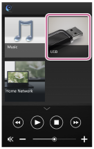 您可以将智能手机/iPhone上安装的“SongPal”用作遥控器。通过此应用程序可以选择/播放连接到扬声器USB A端口(