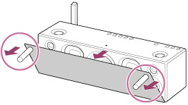 用扬声器格栅拆卸工具(附送)拆下扬声器正面的扬声器格栅。*