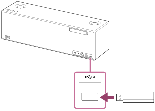- شركة Sony غير مسؤولة عن أي فقدان أو تلف للبيانات الموجودة في محرك فلاش USB الموصول بمكبر الصوت.