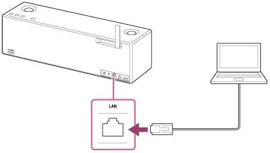 ネットワーク(LAN)ケーブル(市販)でスピーカーをコンピューターにつないで、コンピューターを使って無線LANに接続する方法を説明します。
