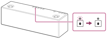 (BLUETOOTH) começará a piscar rapidamente a branco e a coluna entra automaticamente em modo de emparelhamento e, em seguida, siga para o passo 6. - Toque sem soltar no botão