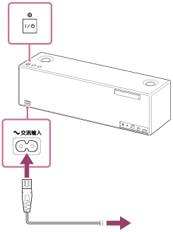 用交流电源线(附送)将扬声器牢固连接到交流电源插座。