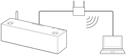 本章节介绍如何通过市售LAN电缆将扬声器连接到无线路由器,然后将路由器连接到电脑。