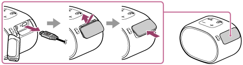 Høyttaleren kan brukes ved å koble den til en stikkontakt via en USB-vekselstrømadapter (alminnelig tilgjengelig) eller ved bruk av det innebygde batteriet.