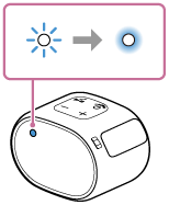 O modo de emparelhamento do altifalante é desativado após cerca de 1 minute e o indicador de corrente/BLUETOOTH pisca lentamente. Contudo, quando as informações de emparelhamento não são armazenadas no altifalante, como, por exemplo, com as predefinições, o modo de emparelhamento não é desativado. Se o modo de emparelhamento for desativado antes de concluído o processo, repita a partir do passo