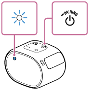 Se ligar um cabo de som à tomada AUDIO IN, a saída de som do dispositivo ligado à tomada AUDIO IN passa a ter prioridade e o utilizador deixa de ouvir o som proveniente do dispositivo BLUETOOTH. O indicador de corrente/BLUETOOTH acende-se ou pisca a azul para indicar o estado BLUETOOTH. A ausência de som do dispositivo BLUETOOTH não significa que há um problema com o altifalante.