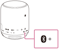 Når du trykker på knapperne –/+ (lydstyrke) på højttaleren eller justerer lydstyrken på BLUETOOTH-mobiltelefonen, blinker indikatoren
