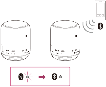 - Om du återställer eller initierar en av de två högtalarna samtidigt som funktionen för tillägg av högtalare används måste den andra högtalaren stängas av. Om den andra högtalaren inte stängs av innan du startar funktionen för tillägg av högtalare kan det bli problem med att upprätta en BLUETOOTH-anslutning och mata ut ljud.