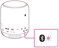 -indikatorn (BLUETOOTH) blinkar långsamt. Om ihopparningsinformationen, t.ex. fabriksinställningen, inte lagras i högtalaren, avbryts inte ihopparningsläget. Börja om från steg