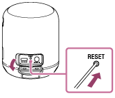 إذا كان لا يمكن تشغيل السماعة بالرغم من أنها في حالة تشغيل، افتح الغطاء في الناحية الخلفية واضغط زر RESET بدبوس أو بغرض مدبب آخر. يعاد إعداد السماعة وتتوقف عن التشغيل ثم تشتغل تلقائيا.