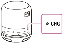 Když reproduktor při nabíjení vestavěné baterie detekuje nějaký problém z důvodu následujících příčin, indikátor CHG (nabíjení) (oranžový) rychle bliká.