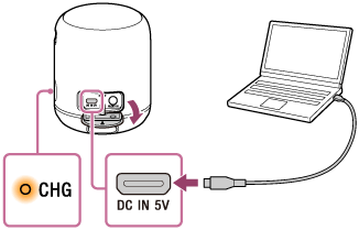 Динамикті АТ розеткасына немесе қосылған компьютерге жалғаған кезде кірістірілген батарея толығымен зарядталған болса, CHG (зарядтау) индикаторы сарғылт түспен жанып, одан кейін шамамен 1 минуттан кейін өшеді.