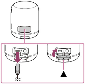 Högtalaren kan drivas genom att ansluta den till ett nätuttag via USB-nätadaptern (finns i handeln) eller genom att använda det inbyggda batteriet.