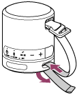 Når du har fastgjort remmen til højttaleren, skal du sørge for, at endeløkken af bæltet hviler ordentligt på krogen.