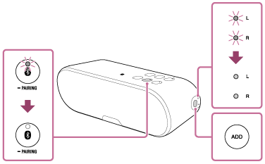 - Егер екі динамик BLUETOOTH арқылы жылдам байланысса, L/R индикаторлары
