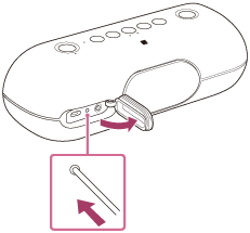 Ako zvučnik nije moguće uključiti ili nije moguće njime upravljati iako je uključen, otvorite poklopac na stražnjoj strani pa pritisnite gumb RESET iglom ili sličnim šiljatim predmetom. Zvučnik se resetira i isključuje.