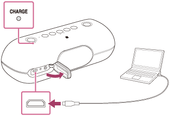 Динамик өшіріліп, USB құрылғысына қосылған кезде, CHARGE индикаторы өшірулі күйінде қалса, ішкі литий-иондық батарея толық зарядталады. Толық зарядталғаннан кейін динамик USB құрылғысына қосулы күйде қалса да, батарея зарядталмайды.