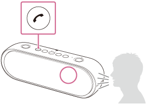 (BLUETOOTH) luminează intermitent în culoarea albă. În următorii paşi şi operaţii din timpul unui apel în regim „mâini libere”, utilizaţi boxa conectată la telefonul mobil BLUETOOTH. - Apăsaţi butonul