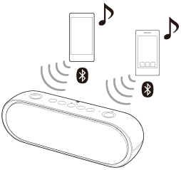 Upp till tre BLUETOOTH-enheter går att ansluta samtidigt till högtalaren. När uppspelning på en av enheterna startar och musik redan spelas växlar högtalaren utmatningen och matar ut ljudet från enheten.