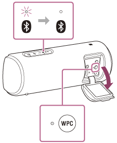(BLUETOOTH) på højttaleren, som du tændte, begynder at blinke blåt. - Tryk på knappen WPC (Trådløs Party Chain).