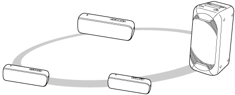 Den følgende betjening er et eksempel på indstilling af SRS-XB22 som den første højttaler. Se betjeningsvejledningen som fulgte med det udstyr, som du anvender til at opsætte andet kompatibelt udstyr med den trådløse festkædefunktion med.