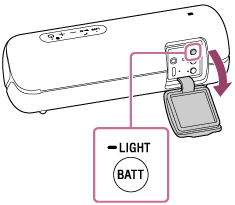 LIGHT-knappen inde bag knappen på bagsiden af højttaleren i ca. 3 sekunder, indtil belysningsfunktionen slås fra/til.