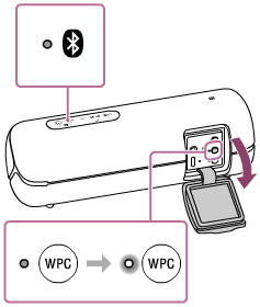 (BLUETOOTH) индикаторы жыпылықтайды және WPC (Party Chain сымсыз функциясы) индикатор жанады, одан кейін