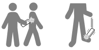 Hvis høyttaleren treffer en person eller gjenstand, kan det føre til uhell, personskade eller feil. Når du bruker Party Booster-funksjonen, må du legge merke til følgende.