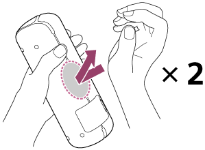 Hvis du slår av Party Booster-funksjonen med høyttalerens - (volum)-knapp og + (volum)-knapp, eller ved å kakke raskt to ganger på baksiden av høyttaleren til venstre for hetten slik som i trinn