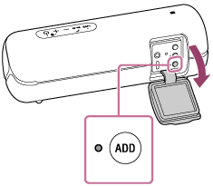Naciśnij przycisk ADD (Speaker Add) wewnątrz nakładki z tyłu głośnika.