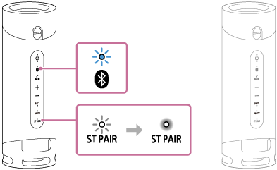 Když je spojení BLUETOOTH mezi 2 reproduktory sestaveno okamžitě, nemusí dojít k blikání indikátorů