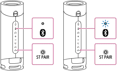 Je-li zaktivována funkce Stereofonní pár, pak po restartování či inicializaci jednoho z reproduktorů ukončete funkci Stereofonní pár stisknutím tlačítka ST PAIR (Stereofonní pár) na druhém reproduktoru. Budete-li pokračovat v používání reproduktoru bez ukončení funkce Stereofonní pár, dojde k potížím, jako je neúspěšné sestavení spojení BLUETOOTH nebo přerušení zvuku.