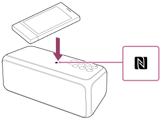 - Start en app på enheden, og bevæg enheden langsomt hen over det sted på højttaleren, der er mærket med N.