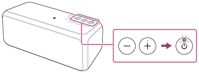 - Juster lydstyrken ved at trykke på knapperne –/+ (lydstyrke) på højttaleren, eller udfør handlingen via BLUETOOTH-mobiltelefonen.