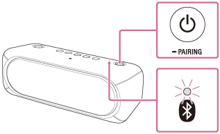 (BLUETOOTH) begynder at blinke hurtigt hvidt, første gang du tænder højttaleren efter køb, eller når der ikke er gemt parringsoplysninger på højttaleren.